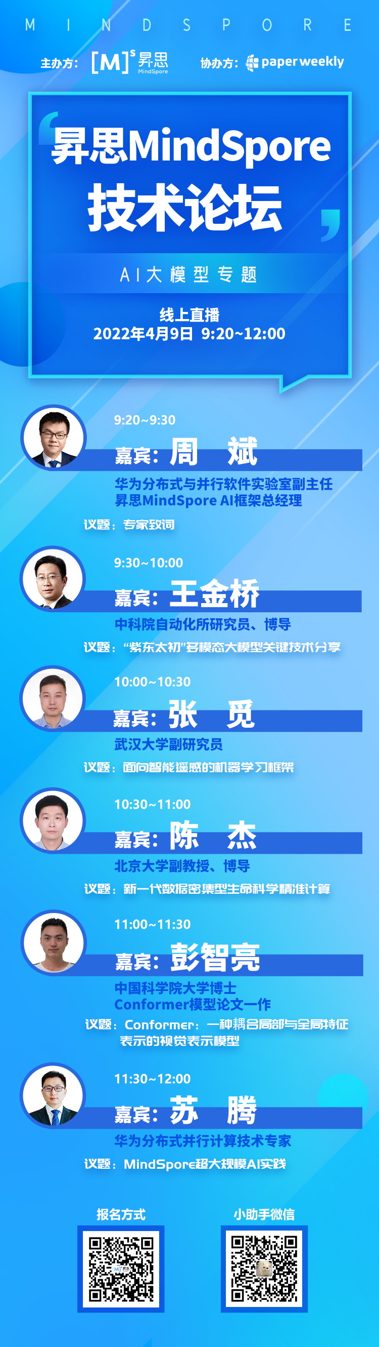 4月9日(明天!),昇思MindSpore社区携手知名媒体PaperWeekly发起首场**【昇思MindSpore技术论坛·AI大模型专题】**线上交流会。