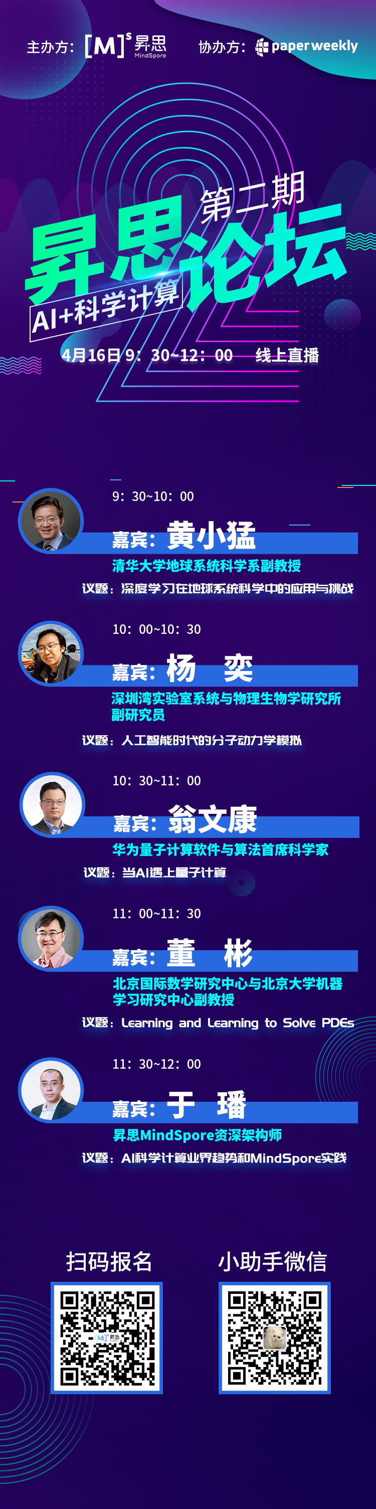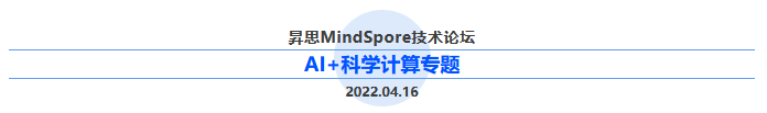 2022年4月16日(本周六),昇思MindSpore社区携手知名媒体PaperWeekly发起昇思MindSpore技术论坛****第二期,**【AI+科学计算专题】**线上交流会。
