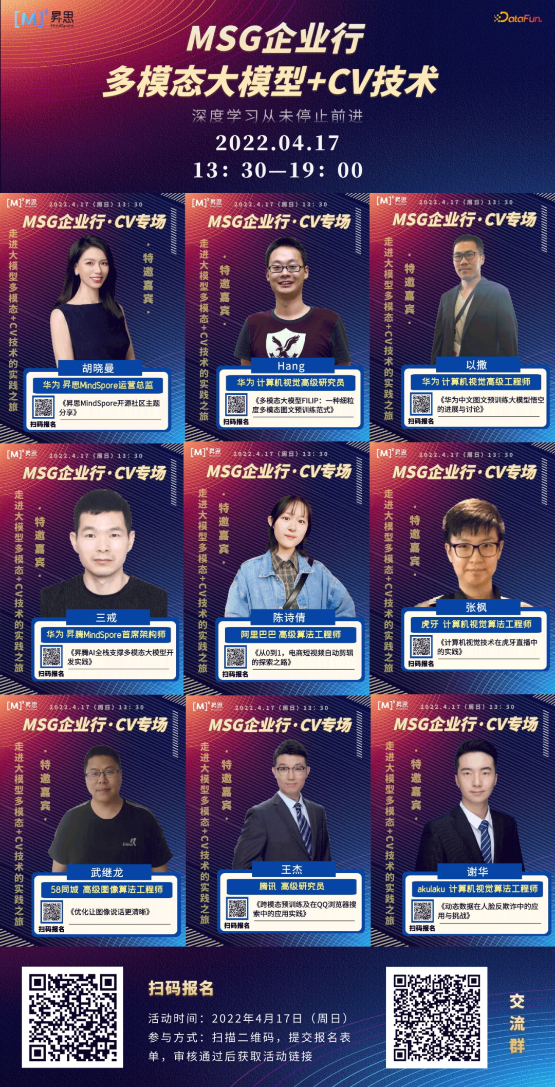 2022年4月17日(本周日),MSG企业行·多模态+CV领域线上技术交流会正式开启。