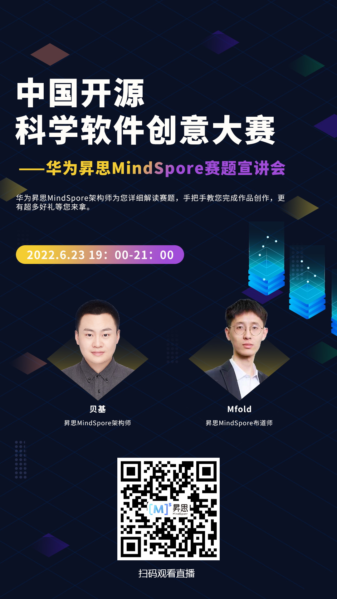 为了给参赛选手‘充电’,帮助选手更好地参加比赛并取得优异的成绩,同时让更多对昇思MindSpore感兴趣的小伙伴对昇思MindSpore的设计和开发流程有更好的了解,掌握昇思MindSpore学习方法和学习渠道, 6月23日(今晚)19:00,昇思MindSpore社区将在B站【MindSpore官方】开设线上赛题解读直播。
