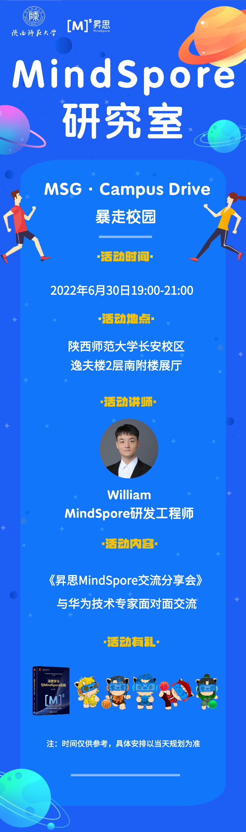 6月30日昇思MindSpore将走进陕西师范大学继续开展" MSG·暴走校园"系列活动。