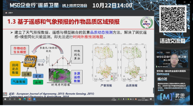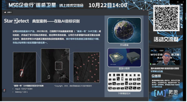 10月22日下午,MSG企业行·遥感卫星线上交流会成功举办!昇思MindSpore开源社区联合知名媒体CSDN,邀请到武汉大学、国家农业信息化工程技术研究中心、中国矿业大学、航天宏图、星测未来、品览的6位遥感领域嘉宾,基于自身丰富的遥感领域技术经验,分享了于人工智能的卫星遥感应用体系。