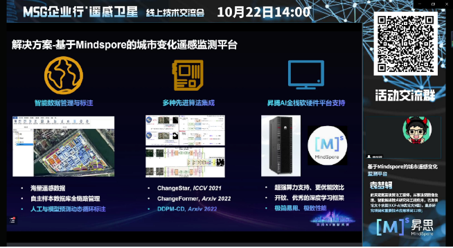 航天宏图高级算法工程师袁梦轲:分享介绍了航天宏图信息技术有限公司联合智能平台事业部,自然资源事业群、武汉定量遥感与人工智能实验室共同提出的“基于Mindspore的城市变化遥感监测平台”。