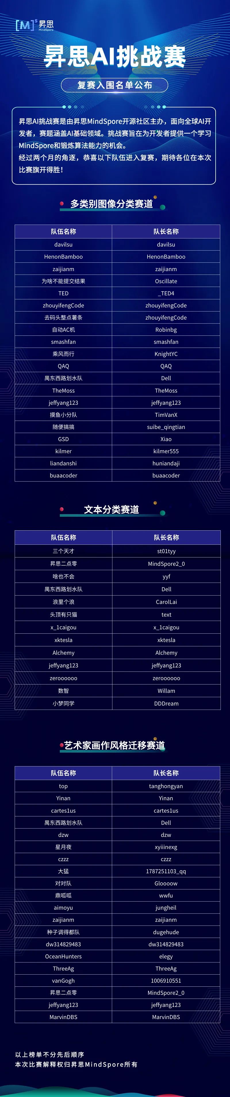 【昇思AI挑战赛】复赛名单公布,快来看看都有谁?