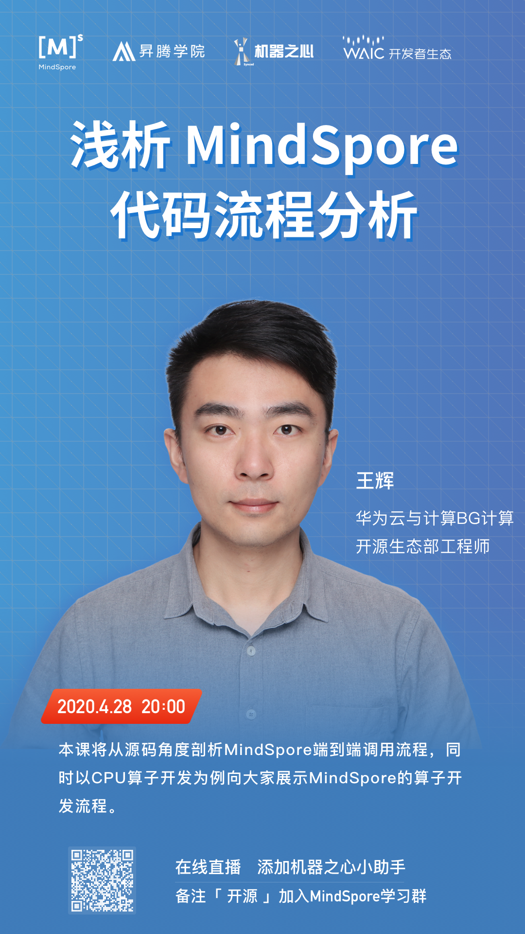 讲师简介:华为云与计算 BG 计算开源生态部工程师,专注于新领域探索(AI、计算、云等)和开源技术研究。目前在负责 MindSpore 社区的生态推广工作,同时也曾参与 OPNFV、OpenSDS 和 Open Service Broker API 等开源社区进行贡献。