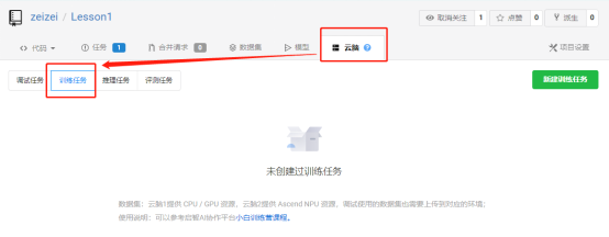 在【云脑】主界面,点击左侧【训练任务】,进入到训练任务的管理页面