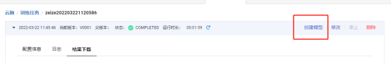 除此之外,还有另一种更便捷的保存模型的方法。点击右上方的【创建模型】,可将训练出的模型统一保存至模型页面进行管理。