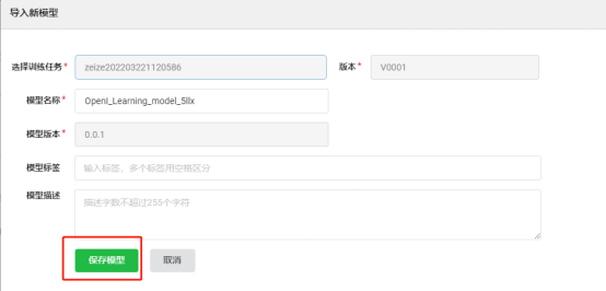 在弹出的页面中,可修改模型名称,然后点击【保存模型】即可。