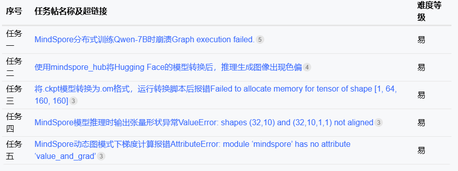 任务四:https://discuss.mindspore.cn/t/topic/1481