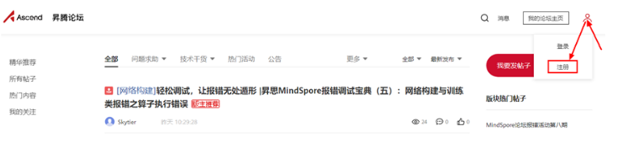 1.打开昇思MindSpore论坛,如果没有账号的用户请先注册,已有账号的用户请直接登录。