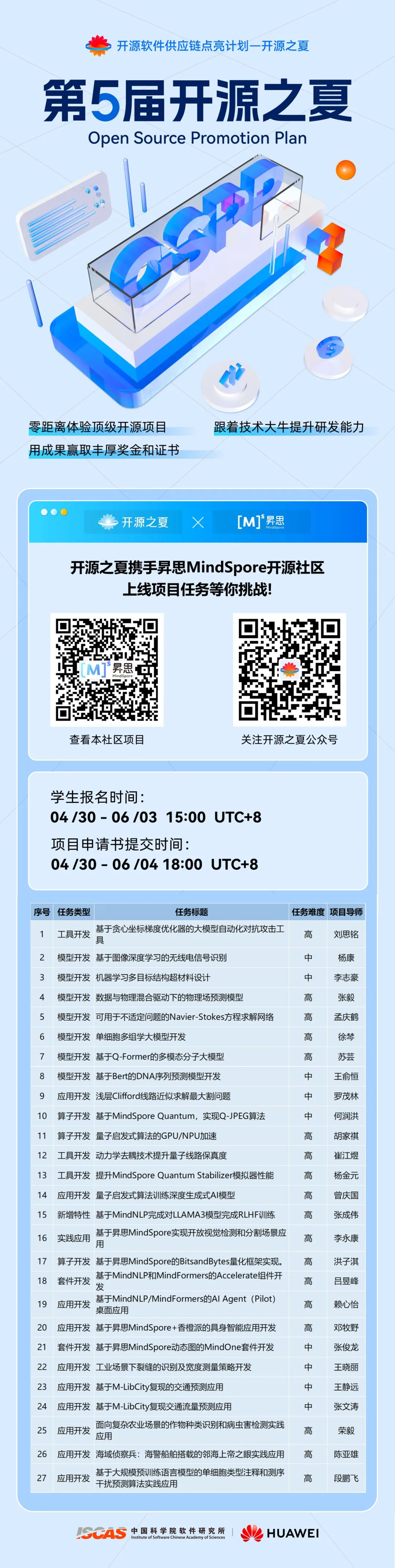 滴!昇思卡!开源之夏-昇思MindSpore社区任务正式发布!