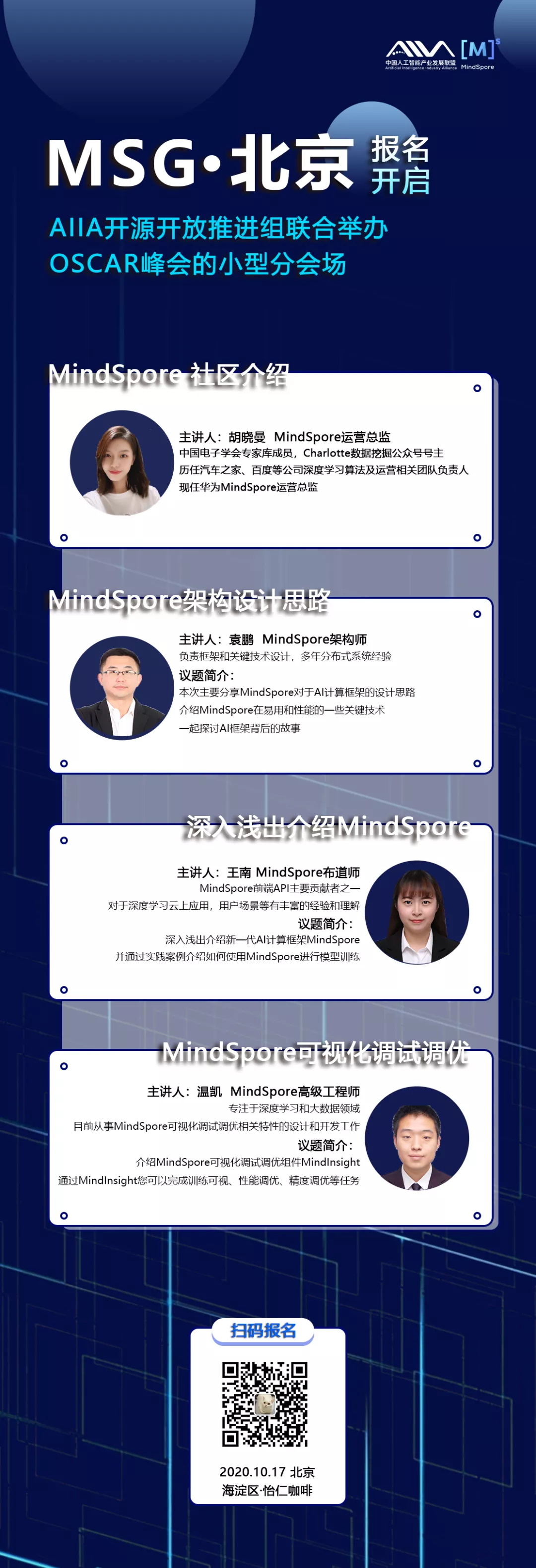 MindSpore Study Group,简称MSG,是提供一个让开发者可以充分进行技术研讨、案例分享、互相交流的公益性社区。为了方便开发者们的深入交流,我们在每个城市都成立MSG组织,满足本地开发者的线下交流机会。