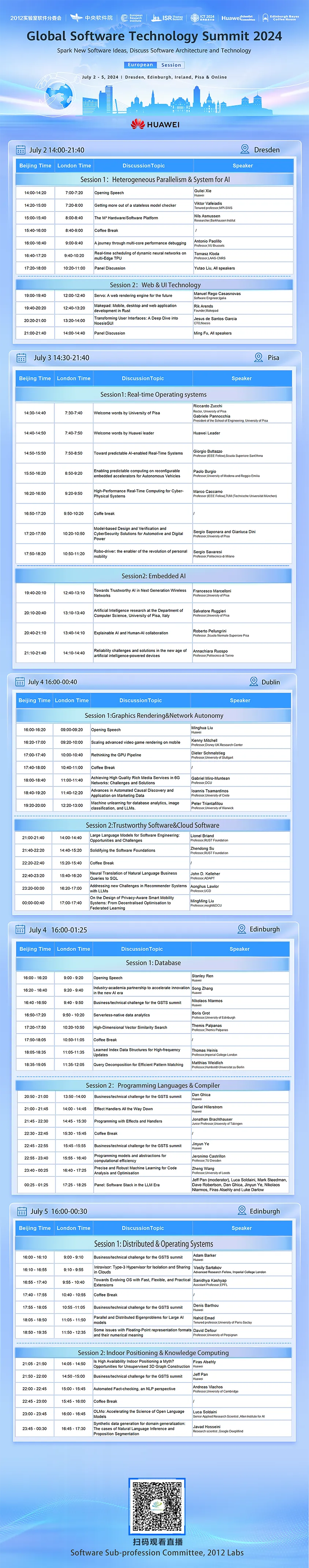 全球软件技术峰会2024 · 欧洲专场将于2024年7月2日-7月5日举行,由华为欧洲德累斯顿、爱丁堡、爱尔兰、比萨、剑桥、巴黎六大研究所联合承办,战略研究院、ICT、科学家委员会协办。此次大会主题为AI Native System Software,邀请到了40余位产业界和学术界的顶级专家、学者参会作专题报告,其中包括IEEE Fellow、全球知名高校与科研机构学者、RUST社区专家、华为ICT/Cloud/消费者等产品线科学家、欧洲代表性科技公司科学家等,会议重点围绕操作系统、AI for system、分布式计算、 知识计算、编译器与编程语言、Web技术、软件自治、云服务等领域的最新趋势、挑战和机遇进行深入讨论,携手推动软件扎到根。热切期盼您莅临本次峰会!