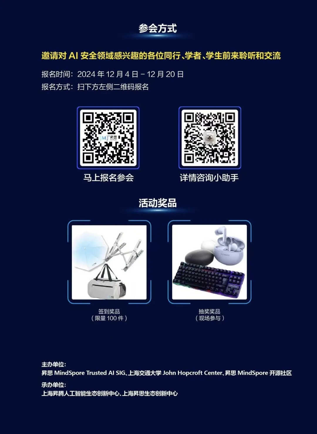 本次活动不仅有硬核干货分享,对话大咖机会,我们还为参与活动的同学准备了签到礼品和抽奖礼品,为开发者打造交流切磋、碰撞思想火花、共同携手进阶的绝佳平台。