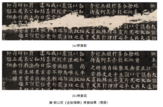 大面积破损修复方法通过构造空间傅里叶卷积,能够显著改善大面积破损修复中出现的细节丢失、纹理模糊、线条缺失以及颜色不合理填充等问题;多模态修复利用文本等专家经验信息,通过潜在扩散模型的微调,构造文本提示下的古画修复与编辑模型,实现了可解释可参与的古画修复与重新创作。