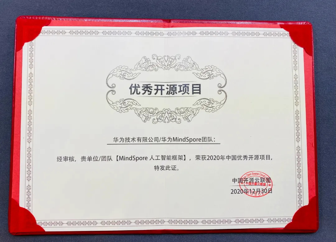 最新资讯:MindSpore喜获由中国开源云联盟颁发的2020年中国优秀开源项目↓