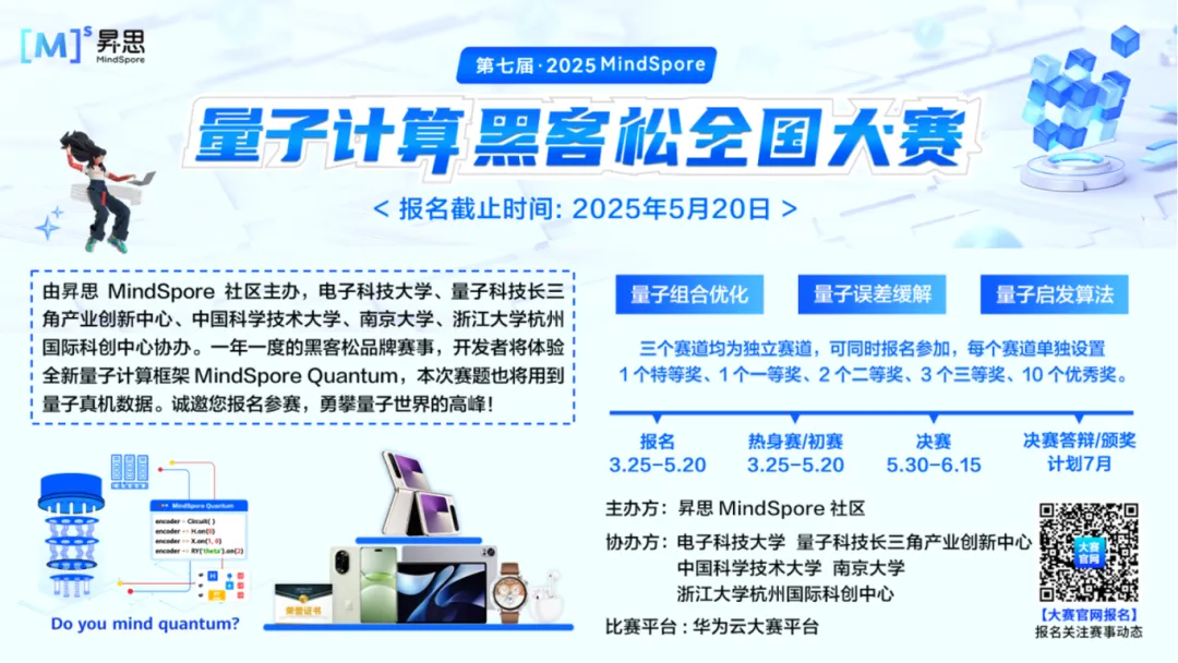 **直播预告:**我们将于2025年4月8日 周二晚上19:00准时直播《第七届·2025 MindSpore量子计算黑客松全国大赛——热身赛通关攻略直播宣讲》
