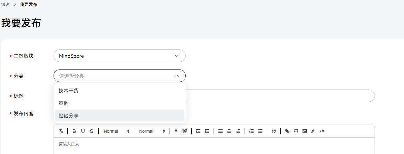 - 将前两步的截图和体验过程发布为一篇个人博客,并在MindSpore-博客中同步发帖子,发帖类型请选择-经验分享。
