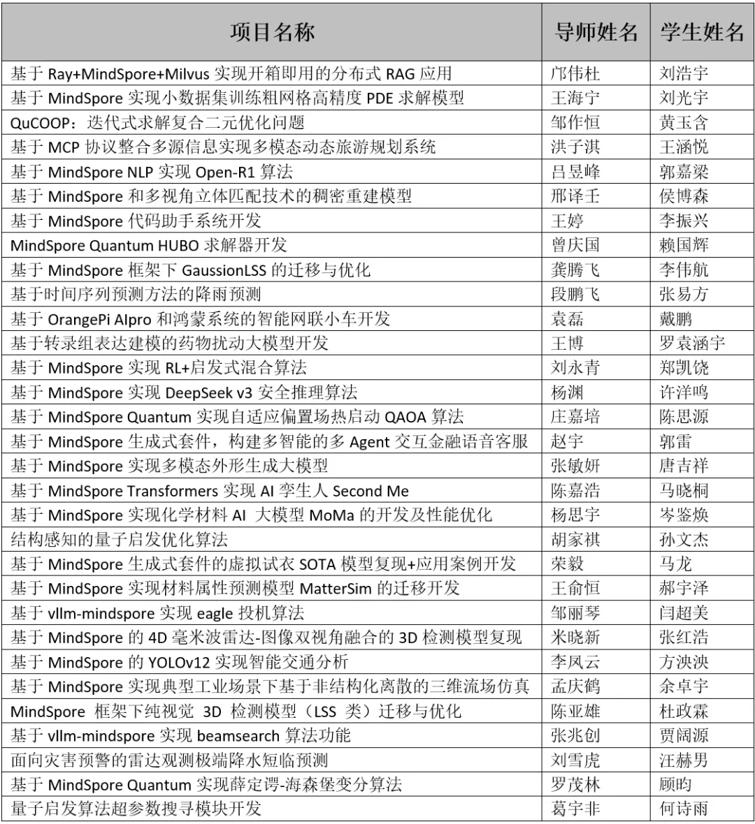 开源之夏2025——昇思MindSpore社区中选名单公示!31位开发者即将启程!