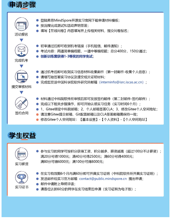 昇思MindSpore开源实习活动新任务迎接你的挑战!多样化的任务类型总有你的擅长项目,完成任务累计积分可获得实习薪资(达成20分)与实习证明(达成60分)快来一起看看吧。