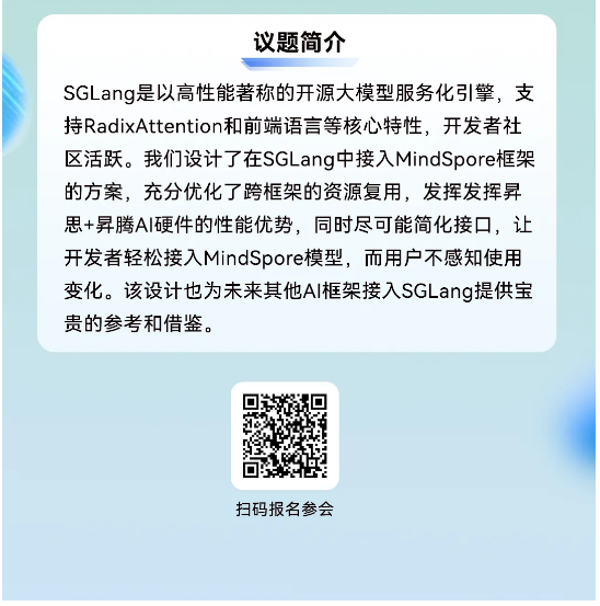 如果您正在使用或关注SGLang、昇思MindSpore,或对大模型推理优化感兴趣,欢迎来现场与我们面对面交流,共同探讨AI系统架构与服务化部署的未来发展。
