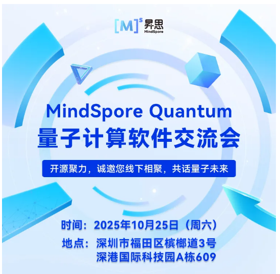 MindSpore Quantum****量子计算软件交流会,将于2025****年10月25日(周六)9:30~17:00在深港国际科技园举行。本次活动将量子计算软件编程实践和量子计算前沿应用报告深度融合,诚邀各位老师和学生莅临现场,共同探索量子世界的奥秘,体验MindSpore Quantum量子计算框架的卓越性能,聆听专家学者们最新最前沿的学术成果分享。