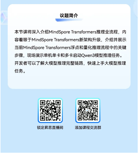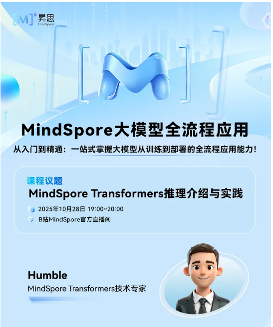 直播预告 | MindSpore Transformers推理介绍与实践(10月28日)