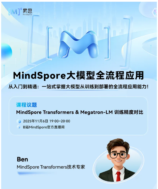 直播预告 | MindSpore Transformers & Megatron-LM 训练精度对比(11月6日)