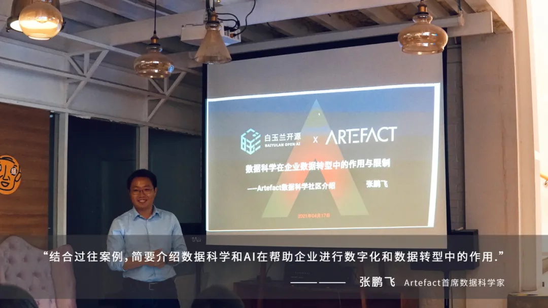 Artefact作为一家全球化的数据咨询与数据营销服提供商,整合数据咨询、数据科学、数据营销等多领域专家,帮助企业把数据转化为商业价值。本次活动中结合过往的案例,简要介绍了数据科学和AI在帮助企业进行数字化和数据转型中的作用,同时介绍在此过程中作为全球数据科学家团队的社区组织和知识分享体系。
