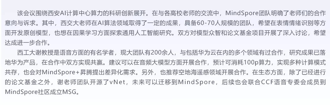 同时,邀请北大、西交大、西工大、西电、国防科大、上交大、华师大、西南交大、成电、东北大学、浙大、哈工大、鹏城、深圳湾等高校和科研机构,各方就论文合作、模型算子众智以及基于A+M全栈利用AI计算中心进行大模型和大应用创新探索进行了深入研讨。
