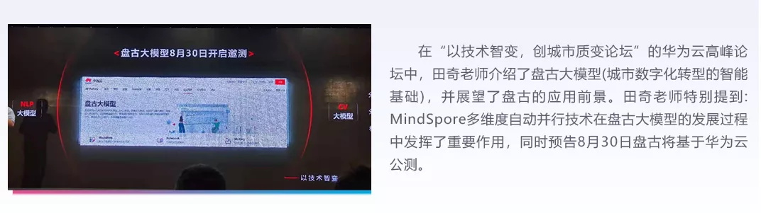 华为昇腾业务总裁许映童演讲提到华为今年基于MindSpore研发的“鹏程·盘古”超大模型,成为业界首个全开源 2000 亿参数中文预训练语言模型;华为云盘古大模型也达到1100亿参数,并涵盖自然语言处理(NLP)大模型、计算机视觉(CV)大模型、多模态大模型、AI+科学计算、智能智造解决方案。