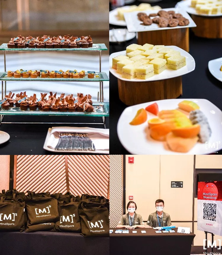MindSpore社区成员提前一天进入现场为开发者们精心布置的场地并认真准备活动伴手礼,活动当天为大家备好了美味可口的茶歇