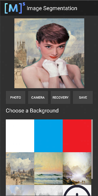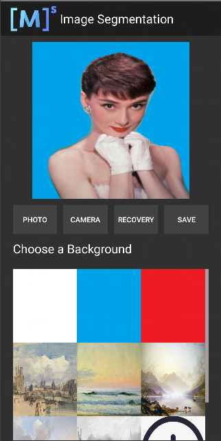 选择九宫格中不同的背景图片,即可对人像的背景进行替换分割。