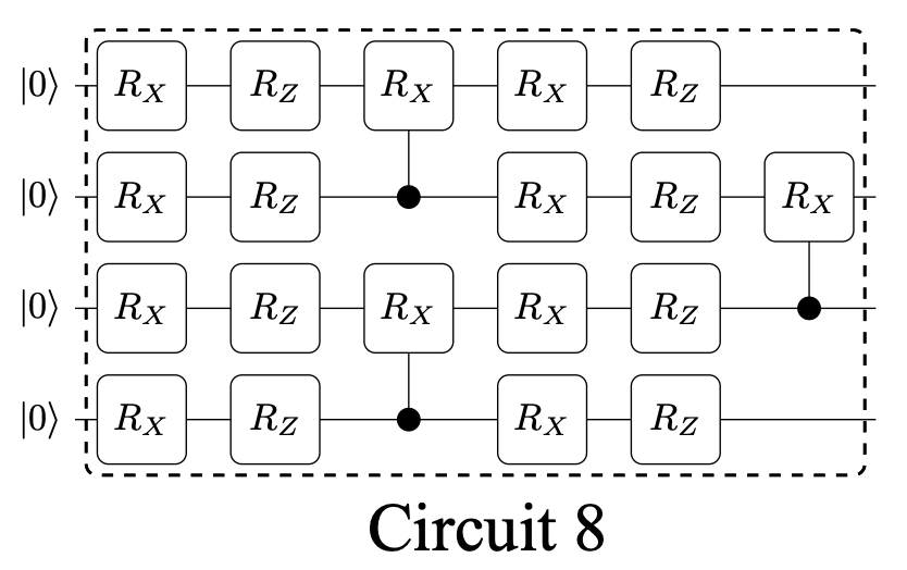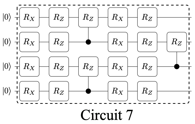 The following Ansatz come from paper Expressibility and entangling capability of parameterized quantum circuits for hybrid quantum-classical algorithms.