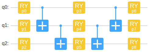 HardwareEfficientAnsatz是一种可以很容易地在量子芯片上高效实现的ansatz。 |