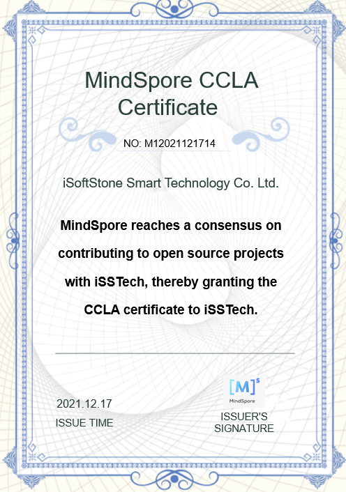 Not long ago, iSoftStone Smart Technology (iSSTech) signed the Corporate Contributor License Agreement (CCLA) with MindSpore, signaling the official introduction to the MindSpore open source community.