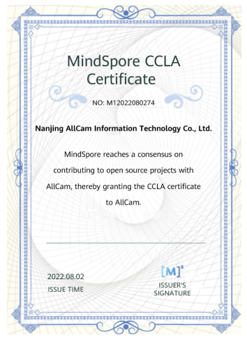 Nanjing AllCam Information Technology Co., Ltd (AllCam for short) signed the Corporate Contributor License Agreement (CCLA), becoming a new member to the MindSpore open source community.