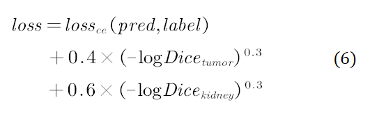 loss=Dicekidney+tumor+lossce(pred,label) (1)