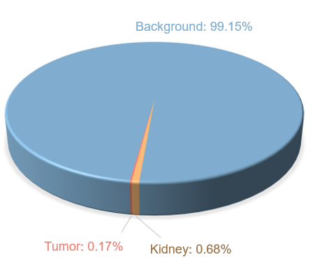 Kidney ROI extraction refers to a process to locate kidney regions in the images. As shown in Figure 3, the total pixel number of the kidneys and tumors is far fewer than that of the background in the given dataset, and the distribution of each category is extremely unbalanced. To obtain higher segmentation accuracy, ROIs need to be cut off from the original images to reduce the background region and alleviate the impact caused by uneven distribution.