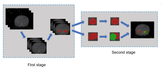 Figure 1 Structure of the two-stage hybrid method for kidney-tumor semantic segmentation