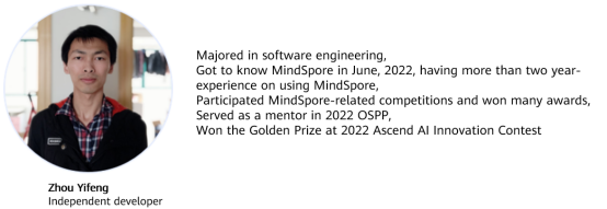 Joining the MindSpore community has opened up new possibilities for him. As an accomplished AI developer, he can now realize his potential and look forward to a bright future instead of just doing odd jobs.