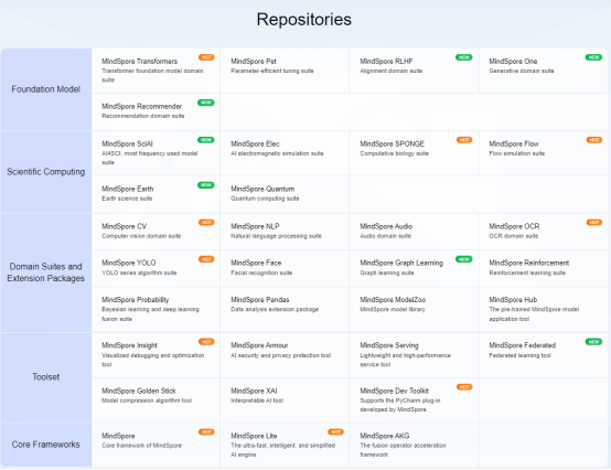 MindSpore has rolled out a plethora of kits for developing LLMs, implementing scientific computing, and building capabilities in base domains. By integrating relevant APIs or applying provided models, you can fully unleash AI-driven innovation.