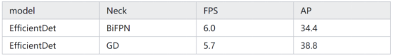 Necks in EfficientDet are replaced with GD, and training and testing are performed on the COCO datasets.
