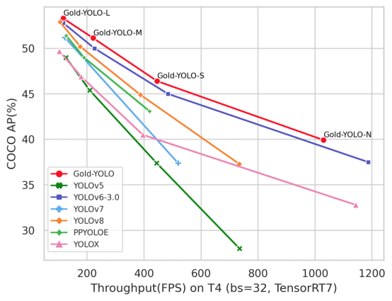 At present, YOLO models usually adopt a method similar to the feature pyramid network (FPN) for information fusion, but this structure leads to information loss during cross-layer information fusion. To solve this problem, Huawei Noah's Ark Laboratory (hereinafter referred to as Huawei) proposes a novel gather-and-distribute (GD) mechanism. This mechanism aggregates and fuses features at different levels from a global perspective, distributes and injects the features to different levels, and builds a more efficient information interaction and fusion mechanism. Gold-YOLO is constructed based on such mechanism. In the COCO dataset, Gold-YOLO has already outperformed previous YOLO models, achieving state-of-the-art (SOTA) efficiency on the accuracy-speed curve.