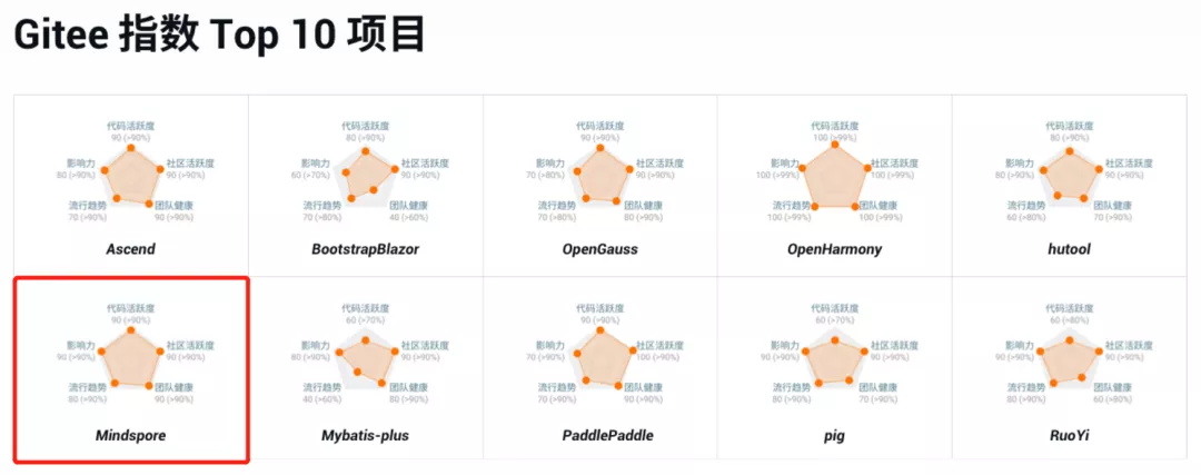 MindSpore各维度的指数详情如下: