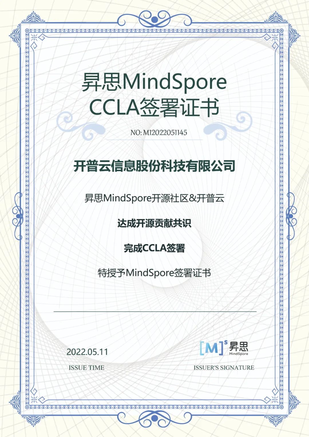 开普云签署 CCLA,携手昇思MindSpore社区共拓信创AI新天地