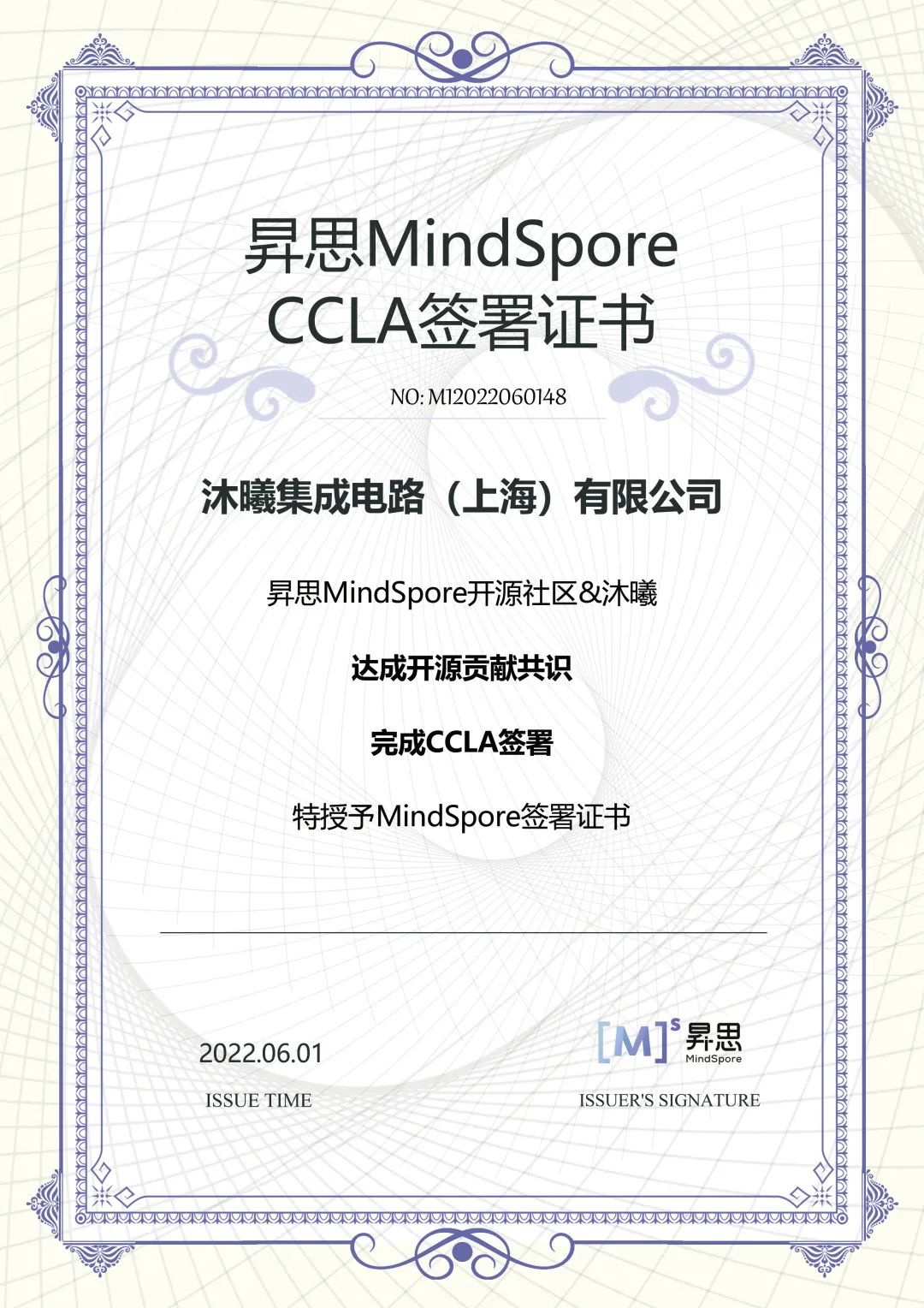 近日,沐曦集成电路(上海)有限公司(以下简称“沐曦”)签署CCLA(Corporate Contributor License Agreement,企业贡献者许可协议书),正式加入昇思MindSpore开源社区。