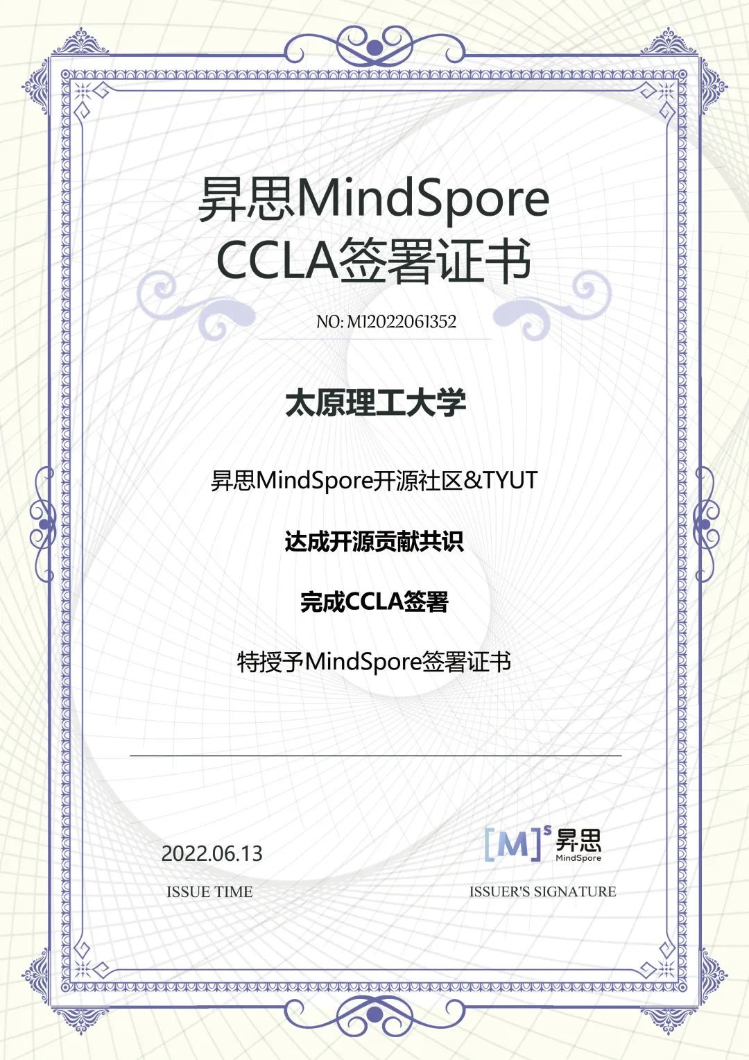 近日,太原理工大学签署CCLA(Corporate Contributor License Agreement,企业贡献者许可协议书),正式加入昇思MindSpore开源社区。