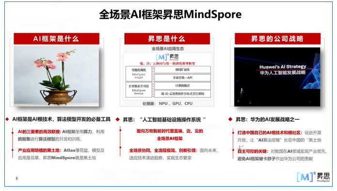 昇思MindSpore是华为开源的新一代全场景AI框架,支持端、边、云全场景灵活部署,开创全新的AI编程范式,降低AI开发门槛,旨在实现开发友好、运行高效、部署灵活三大目标,同时着力构筑面向全球的人工智能开源社区,推动人工智能软硬件应用生态繁荣发展。