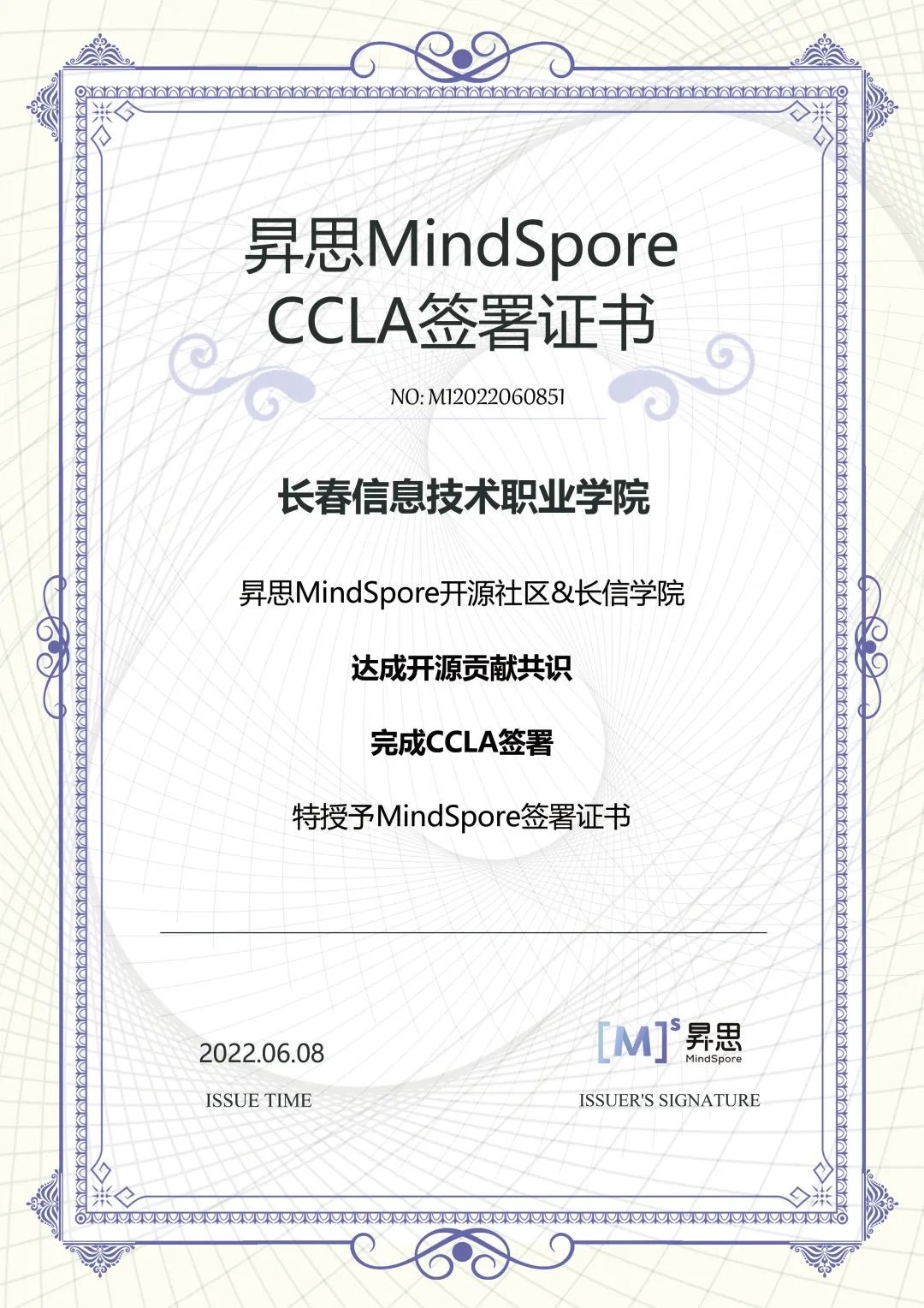 近日,长春信息技术职业学院签署CCLA(Corporate Contributor License Agreement,企业贡献者许可协议书),正式加入昇思MindSpore开源社区。
